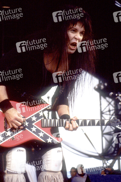 Blackie Lawless von W.A.S.P. live auf dem Monsters of Rock Festival 1992 im Donington Park. Donington, 22.08.1992