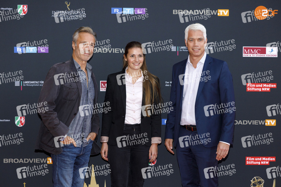 Hannes Jaenicke, Sandra Evening und Henning Tewes beim Kölner Emmy Cocktail 2021 anlässlich der 15. Kölner Jurysitzung des International Emmy auf Schloss Arff. Köln, 01.09.2021