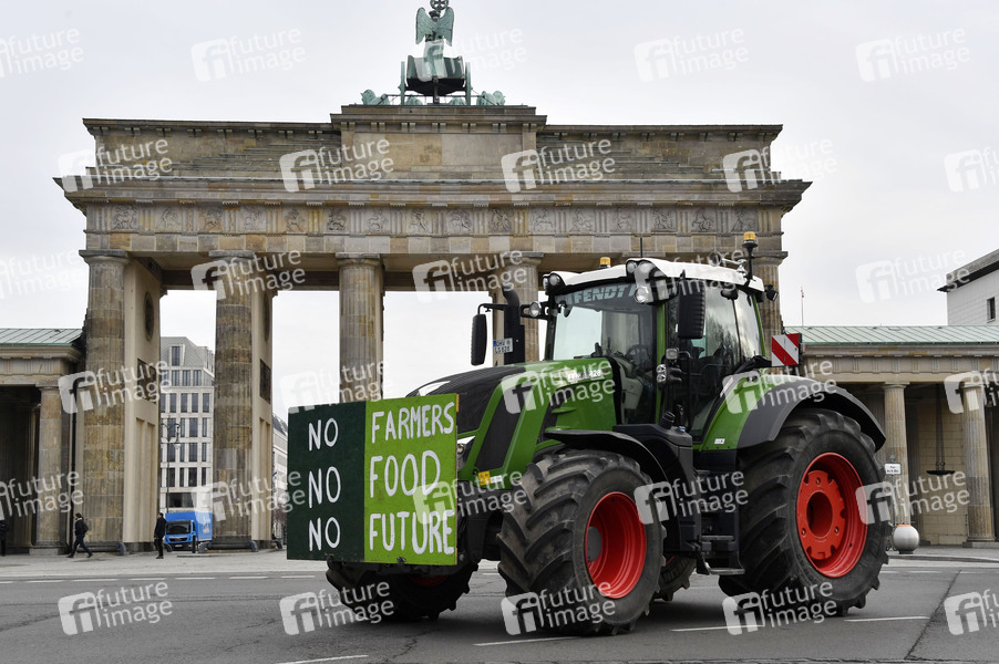 Bauern aus allen Landesteilen Deutschlands protestieren gegen die Agrarpolitik der Regierung mit ihren Traktoren vor dem Brandenburger Tor. Berlin, 29.01.2021