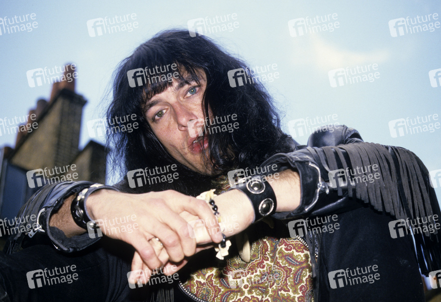 Rudi Protrudi von The Fuzztones bei einem Photoshooting. London, 27.05.1988