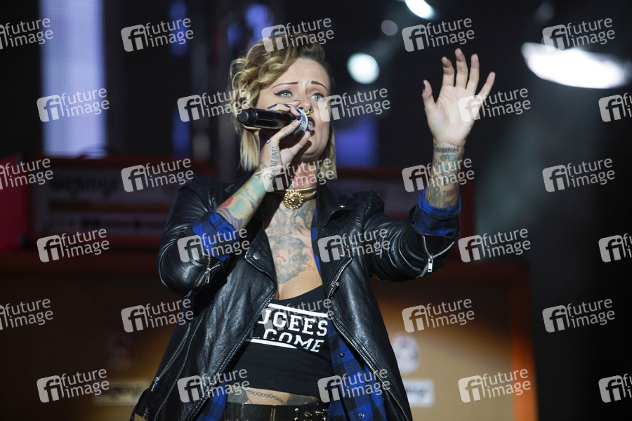 Jennifer Weist von Jennifer Rostock live auf der Grand Prix Party zum Eurovision Song Conetest 2014 auf dem Spielbudenplatz. Hamburg, 10.05.2014.