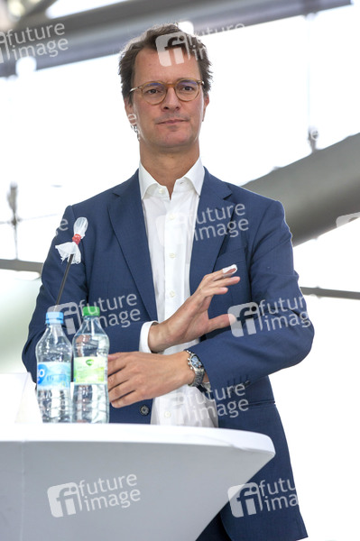 Hendrik Wüst bei der Vorstellung einer technischen Machbarkeitsstudie zum Einsatz bemannter Flugtaxen am Köln Bonn Airport. Köln, 22.07.2020