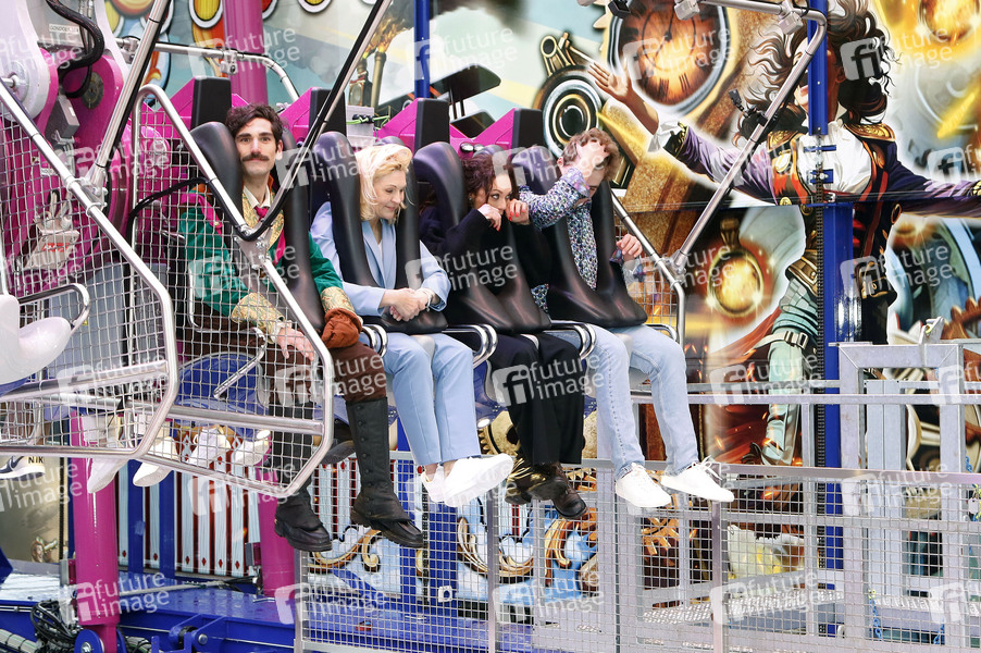 Marilyn Fackler, Lilly Becker und Jamie Fackler bei der Einweihung des weltweit höchsten transportablen Flugkarussells 'Evolution - Flight Beyond' auf dem Hamburger Dom. Hamburg, 22.03.2024