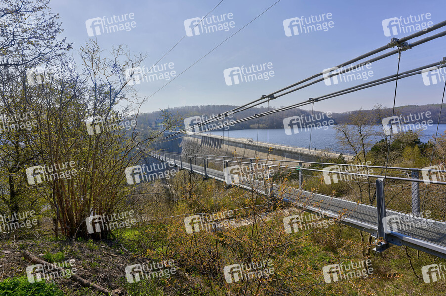 Rappbodetalsperre und 483 m lange Fußgängerhängebrücke Titan RT im Landkreis Harz. Hasselfelde, 08.05.2021