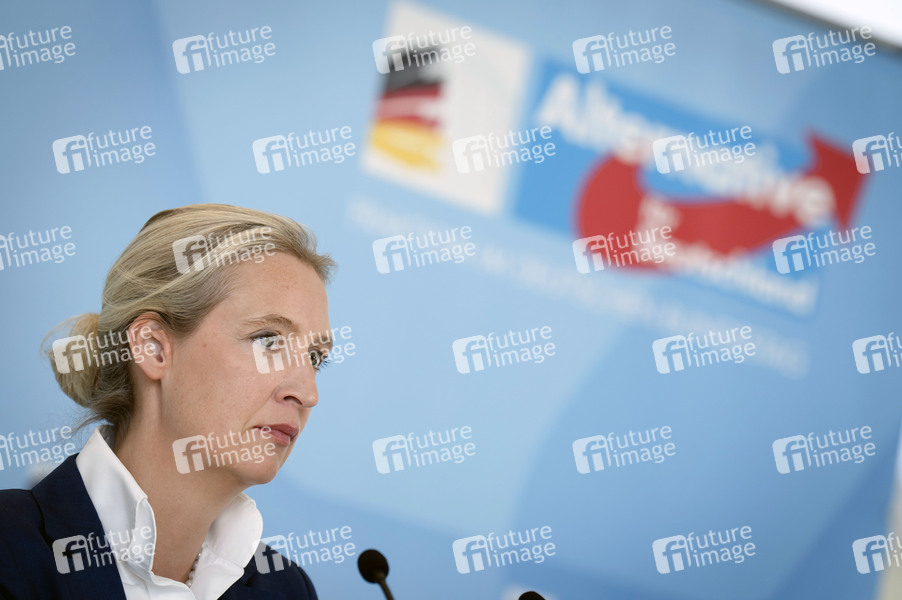 Politik, Statement, Pressekonferenz, PK, Reichstag, Deutscher Bundestag, Demokratie, Parlament, Parlamentsgebäude, Volksvertreter, MdB, Mitglied des Bundestages, Abgeordnete, Politikerin, Vorsitzende der AfD-Bundestagsfraktion, Bundessprecherin der AfD
