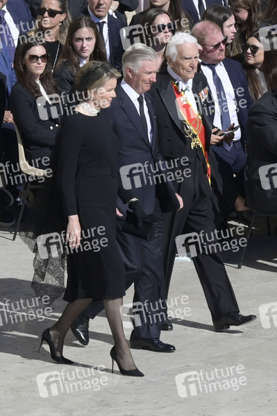 Mathilde, Königin der Belgier und Philippe, König der Belgier bei der Trauermesse für den verstorbenen Papst Franziskus auf dem Petersplatz. Vatikanstadt, 26.04.2025