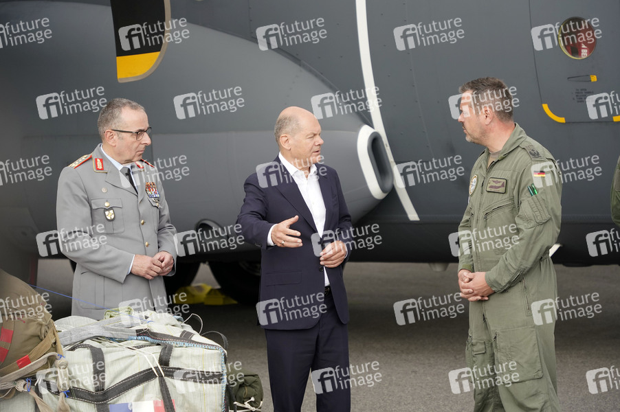 Carsten Breuer und Olaf Scholz vor dem militärischen Transportflugzeug Airbus A400M beim Eröffnungsrundgang der ILA Berlin auf dem ILA-Gelände am Flughafen BER Berlin-Brandenburg. Berlin, 05.06.2024