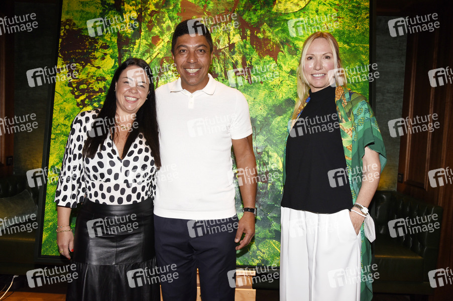 Cintia Elber, Giovane Elber und Simone von Anhalt bei der Finissage zur Benefiz Kunstauktion in der Jahreszeiten Bar im Hotel Vier Jahreszeiten Kempinski. München, 04.07.2021