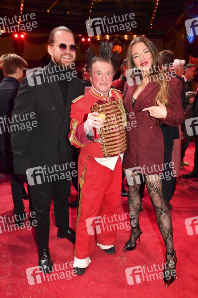 Adrian Louis und Joelina Drews mit Clown Gianni Fumagalli bei der Premiere der Circus Krone Winterspielzeit mit dem Programm 'Ich.Du.Wir.Krone' im Circus Krone Bau. München, 25.12.2025