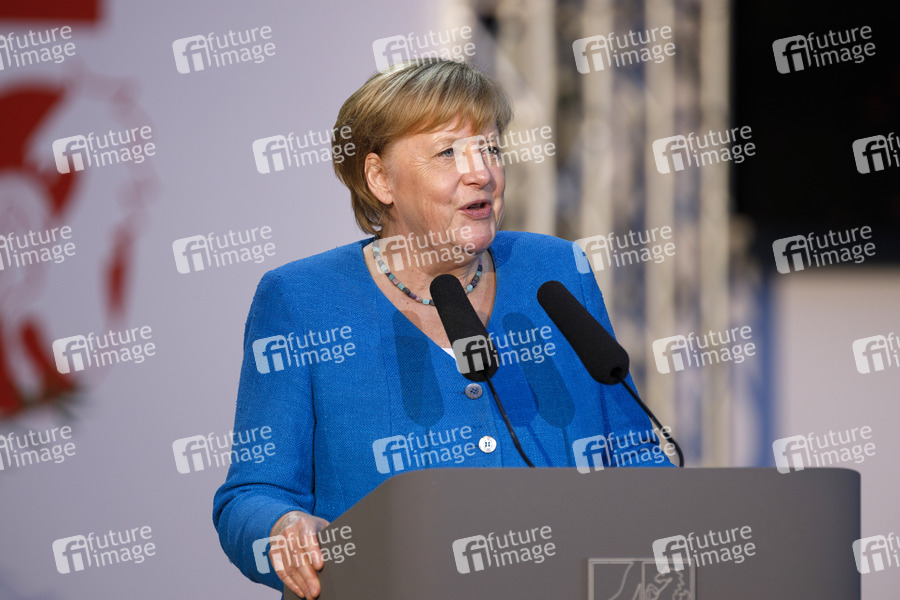 Angela Merkel beim Festakt zum 75. Geburtstag des Landes Nordrhein-Westfalen auf der Düsseldorfer Galopprennbahn. Düsseldorf, 23.08.2021
