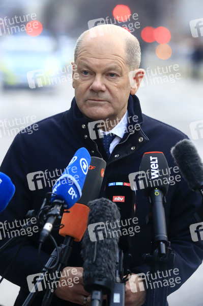 Olaf Scholz beim Pressestatement am Ort des mutmaßlichen Anschlags vom 13. Februar. München, 15.02.2025
