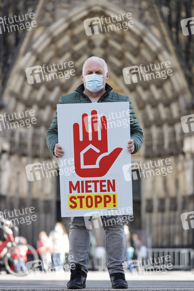 Die politische Kampagne des überparteilichen Bündnis 'Mietenstopp' kritisiert die wohnungspolitische Leistungsbilanz der Bundesregierung und fordert Preisstillstand für sechs Jahre. Im Bild der Aktivist Kalle Gerigk, der sich seit Jahren für Mieterrechte einsetzt. Köln, 27.03.2021