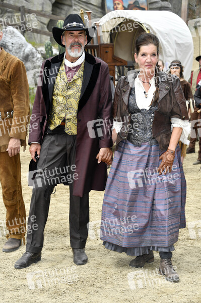 Sascha Hehn und Katy Karrenbauer bei der Pressekonferenz der Karl-May-Spiele 2022 mit ersten Szenen aus 'Der Ölprinz' im Freilichttheater am Kalkberg. Bad Segeberg, 17.06.2022