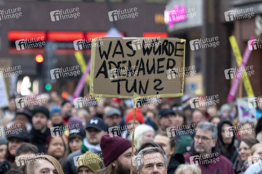 Demonstranten bei der PRÜF! - Auftakt-Demo zum Start einer Kampagne des Satirikers Nico Semsrott für die Prüfung aller als rechtsextrem eingestuften Parteien. Hamburg, 08.11.2025