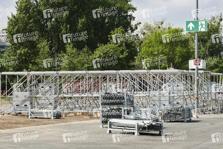 Aufbau für die Autokonzerte auf dem Schützenplatz. Die Besucher sollen unter Berücksichtigung klarer Hygiene-Vorschriften während der Corona-Krise die Konzerte aus dem Auto verfolgen. Hannover, 03.05.2020