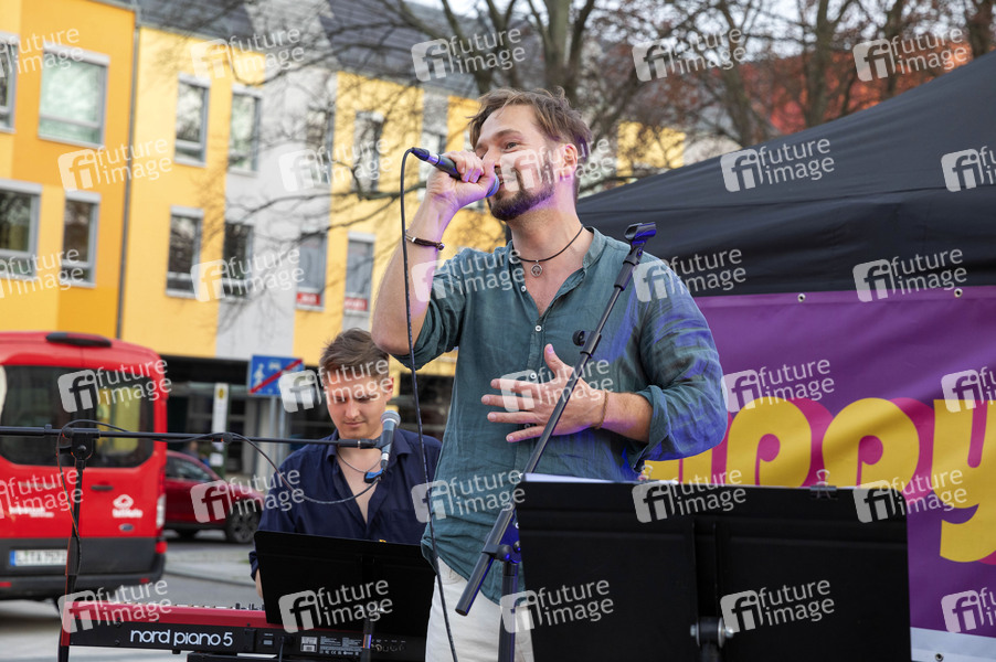 Justin Lehmann-Friese und Felix Räuber live beim ersten 'Happy Monday - Wjesola póndzela' auf dem Kornmarkt. Bautzen, 08.04.2024