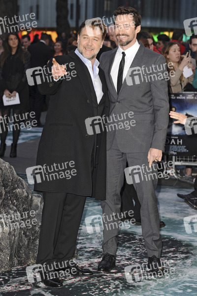 Russell Crowe und Hugh Jackman bei der UK-Premiere des Kinofilms 'Noah' im Odeon Leicester Square. London, 31.03.2014