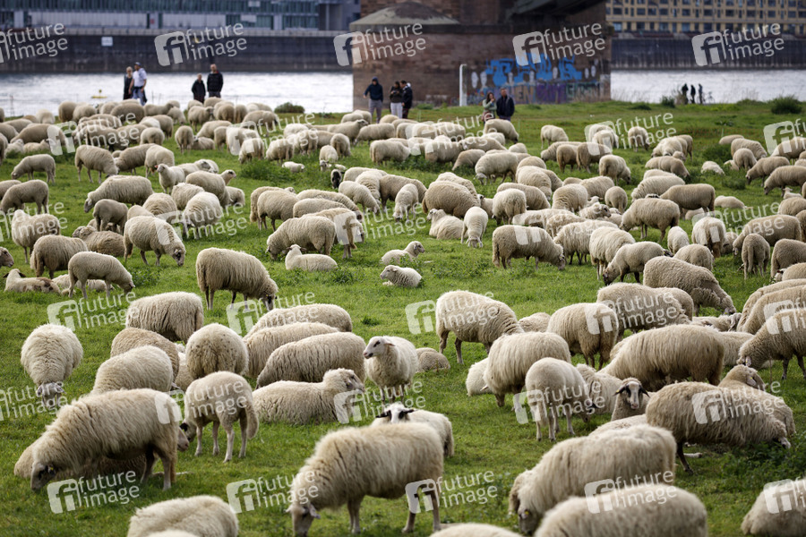 Als Herdenimmunität bezeichnet in der Epidemiologie eine indirekte Form des Schutzes vor einer ansteckenden Krankheit wie Covid-19, wenn ein hoher Prozentsatz einer Population schon immun geworden ist - im Bild eine Schafherde auf den Poller Wiesen. Köln, 01.05.2020