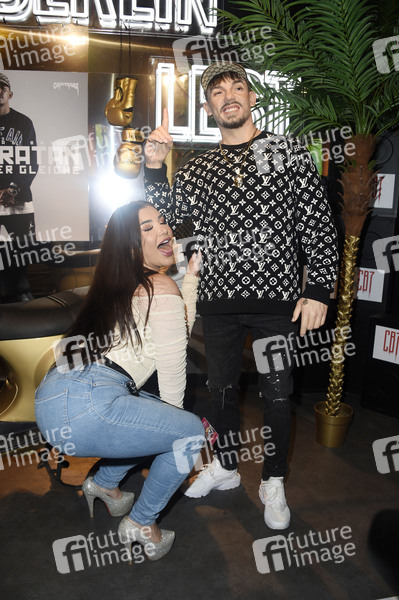 Melody Haase mit Capital Bra Wachsfigur bei der Eröffnung der Ausstellung 'Berlin 100' im Madame Tussauds. Berlin, 15.07.2021