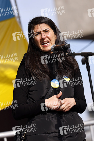 Serap Güler bei einer Demonstration gegen den Krieg in der Ukraine organisiert vom Verein 'Blau-Gelbes Kreuz' auf dem Roncalliplatz. Köln, 13.03.2022