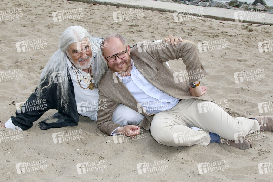 Mario Adorf und Axel Milberg am Set des ARD TV-Films 'Der Liebling des Himmels' am Elbstrand Övelgönne. Hamburg, 19.05.2014