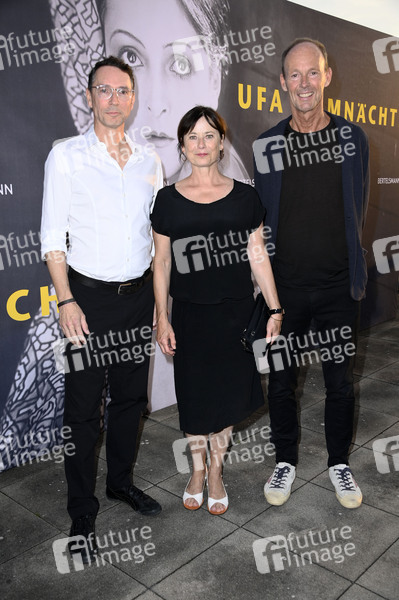Sascha Schwingel, Inka Friedrich und Thomas Rabe beim Eröffnungsempfang der UFA Filmnächte 2025 auf der Dachterrasse der Bertelsmann Repräsentanz. Berlin, 27.08.2025