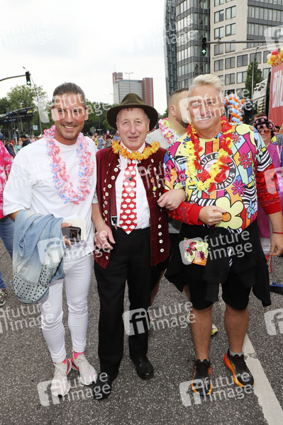 Markus Luca, Schäfer Heinrich und Hubert Fella beim 26. Schlagermove 2024 auf dem Heiligengeistfeld. Hamburg, 25.05.2024