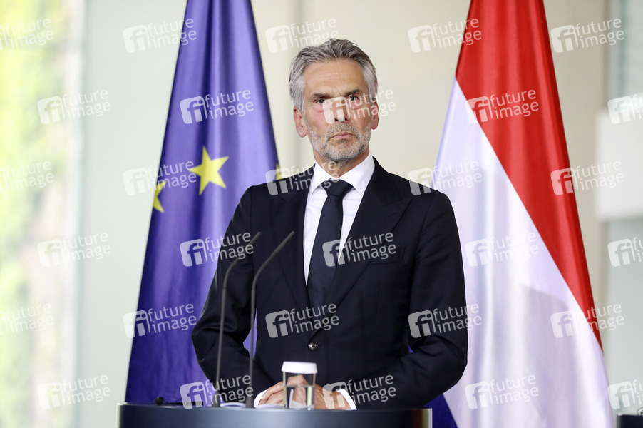 Dick Schoof beim Empfang des niederländischen Ministerpräsidenten zu einem gemeinsamen Gespräch mit anschließendem Pressestatement im Bundeskanzleramt. Berlin, 10.06.2025