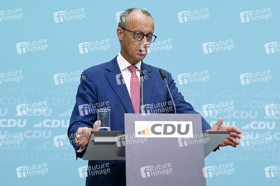 Friedrich Merz bei der Pressekonferenz der CDU nach den Landtagswahlen in Thüringen und Sachsen im Konrad-Adenauer-Haus. Berlin, 02.09.2024