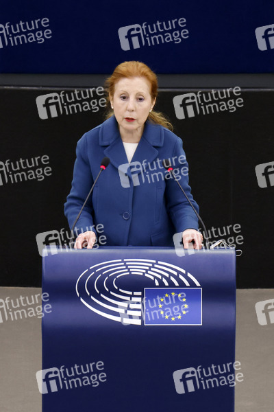 Maria da Graca Carvalho im Plenarsaal des Europäischen Parlaments. Straßburg, 10.03.2022