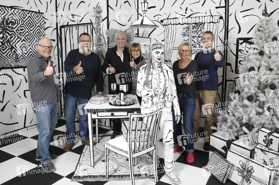 Bodyart: Colour Christmas Splash Team: Videograf Andreas P., Fotograf Burkhard Schubert, Body Art Künstler Jörg Düsterwald, Paintingassistentin Maria Skupin, Model Tatjana Heinz, Assistentin Michaela und Fotograf Tschiponnique Skupin im Studio Düsterwald. Hameln, 30.11.2025 - BodyArt-Künstler: Jörg Düsterwald