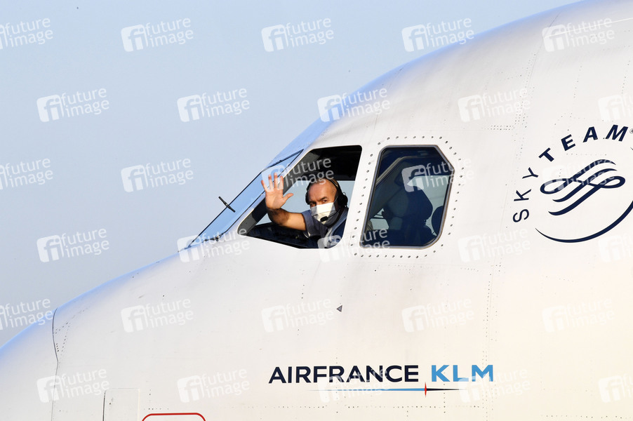 Air-France-Pilot Christophe Ruch startet das allerletzte Flugzeug vom TXL. Mit der Inbetriebnahme des Flughafens Berlin Brandenburg Willy Brandt (BER) wird der gesamte Luftverkehr der Hauptstadtregion an einem Standort konzentriert. Der Flughafen Tegel, kurz TXL, schließt am 8. November. 60 Jahre nach dem ersten Linienflug von Air France wird am 8. November ein Flugzeug der französischen Airline zum allerletzten Mal von dem Flughafen im Nordosten Berlins starten und Adieu sagen. Berlin, 08.11.2020