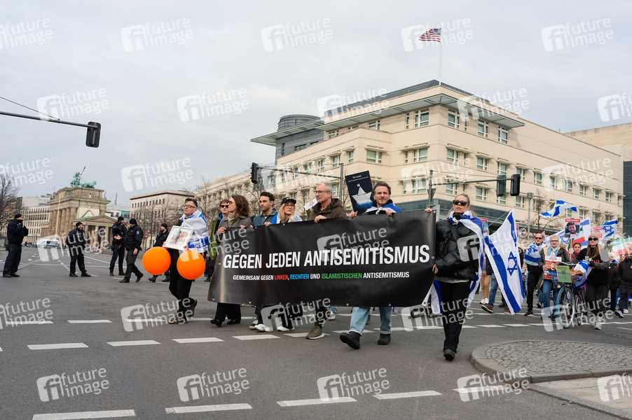 Paula Ranft und Volker Beck bei der Demo gegen Antisemitismus unter dem Motto 'Nie wieder ist Jetzt - Gemeinsam gegen linken, rechten und islamistischen Antisemitismus' vom Roten Rathaus zum Denkmal für die ermordeten Juden Europas. Berlin, 10.03.2024