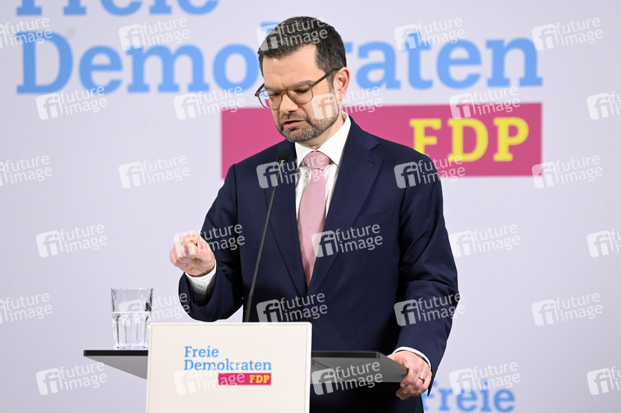 Marco Buschmann bei der Presseskonferenz der FDP zur Vorstellung des neuen Generalsekretärs Marco Buschmann im Hans-Dietrich-Genscher-Haus. Berlin, 02.12.2024