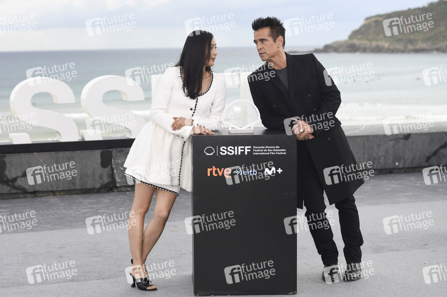 Fala Chen und Colin Farrell beim Photocall zum Kinofilm 'Ballad of a Small Player' auf dem 73. Internationalen Filmfestival San Sebastian / Festival Internacional de Cine de San Sebastián auf der Kursaal Terasse. San Sebastian, 25.09.2025