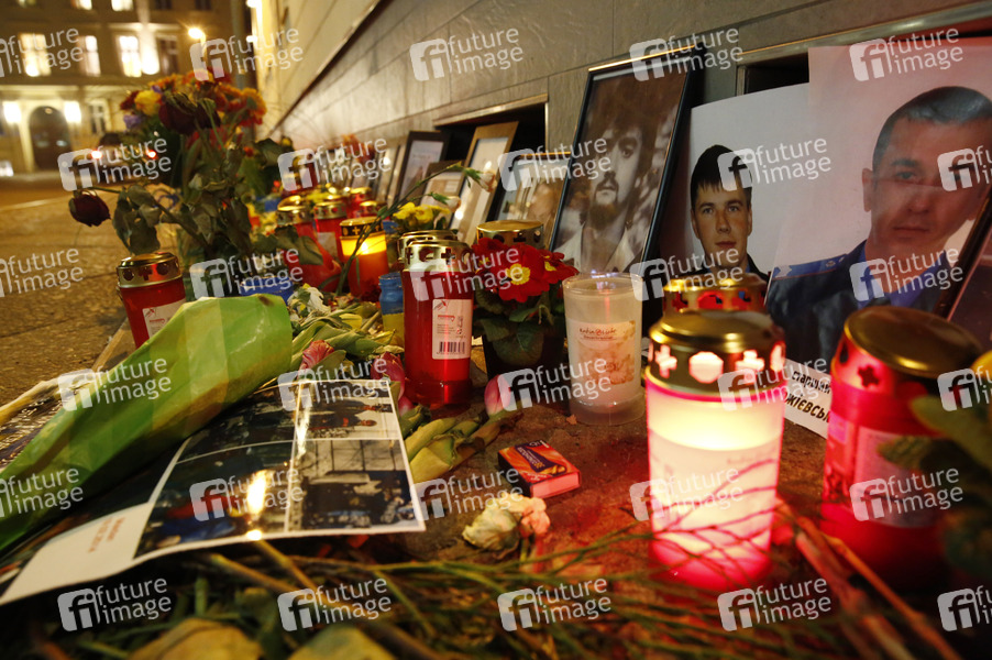 Kerzen, Blumen und Fotos vor der Ukrainischen Botschaft zum Gedenken an die 'Maidan-Opfer' in Kiew. Berlin, 04.03.2014