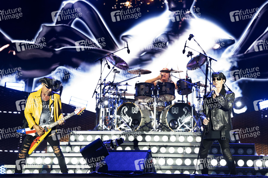 Rudolf Schenker, Mikkey Dee und Klaus Meine von den Scorpions live bei der Konzertreihe 'Moon&Stars 2025' auf der Piazza Grande. Locarno, 12.07.2025