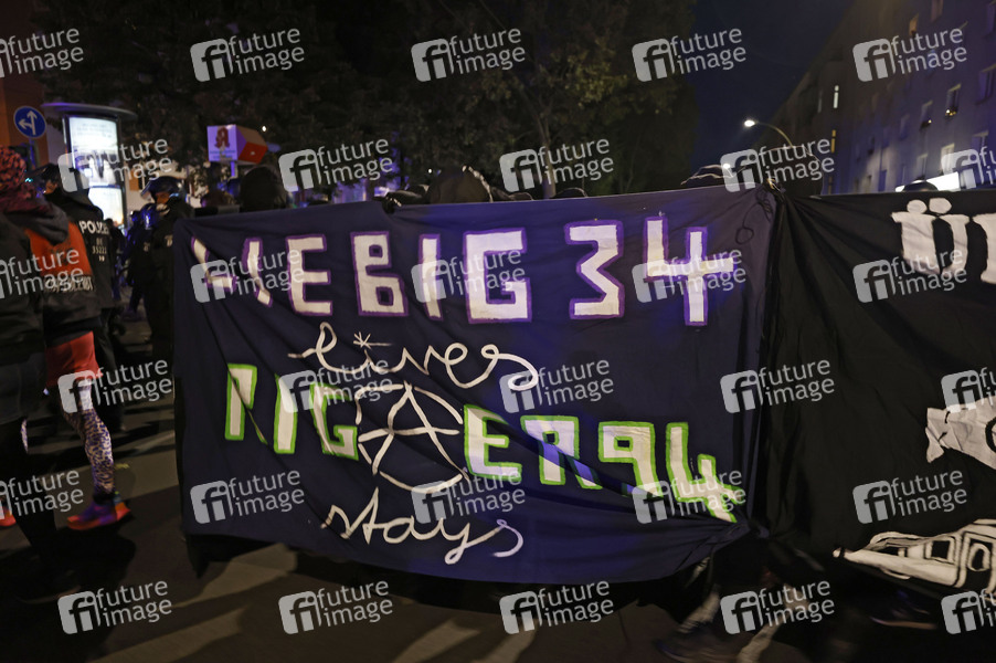 Demonstration gegen Räumung vom Wagencamp 'Köpi' von der Rigaer Straße zum Gelände des Camps an der Köpenicker Straße. Berlin, 09.10.2021