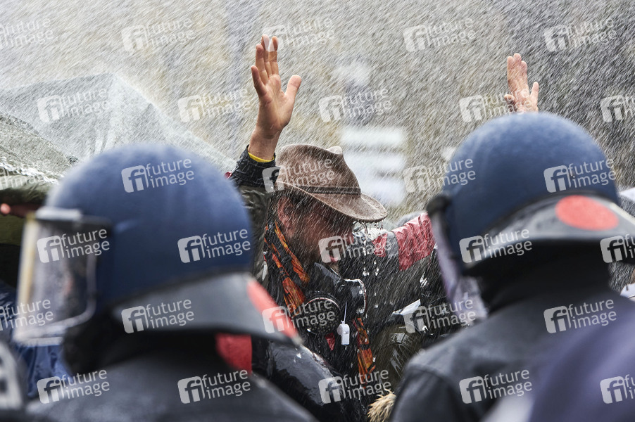 Tausende Demonstranten protestieren am Brandenburger Tor und im Regierungsviertel gegen die Corona-Politik der Regierung anlässlich der Bundestagsitzung zum Infektionsschutzgesetz. Die Polizei löst den Protest auf. Dabei kommt es zu Festnahmen, dem Einsatz von Wasserwerfern und Verstößen gegen die Maskenpflicht. Proteste in unmittelbarer Nähe des Bundestags waren zuvor untersagt worden. Berlin, 18.11.2020