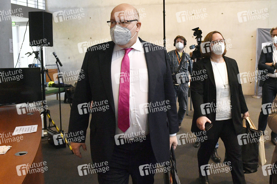 Peter Altmaier bei der Ankunft zu seiner Vernehmung als Zeuge in der 41. Sitzung des 3. Untersuchungsausschusses 'Wirecard' im Paul-Löbe-Haus. Berlin, 20.04.2021