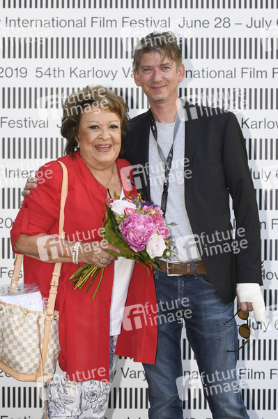 Jirina Bohdalova und Jiri Strach bei der Ankunft am Hoptel Pupp auf dem 54. Internationalen Filmfestival Karlovy Vary 2019. Karlsbad, 04.07.2019