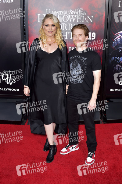 Clare Grant mit Ehemann Seth Green bei der Eröffnung der 'Halloween Horror Nights 2019' in den Universal Studios Hollywood. Universal City, 12.09.2019