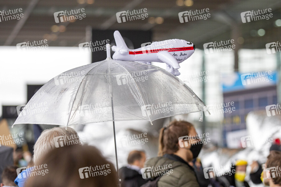 Protestaktionen von Mitgliedern des Bündnisses 'Am Boden bleiben' bei der Eröffnung des Flughafens Berlin-Brandenburg (BER). Schönefeld, 31.10.2020