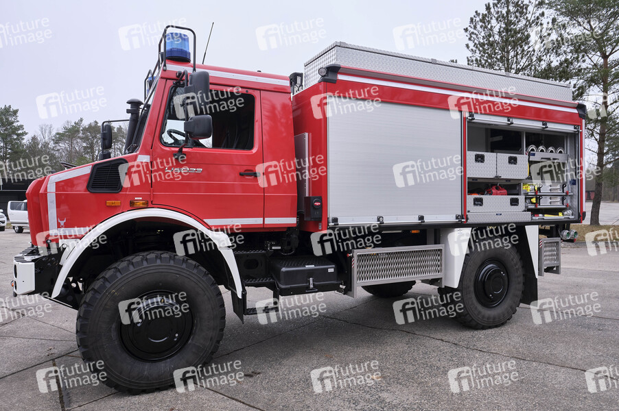 Erprobung eines neuen Waldbrandlöschfahrzeuges von Mercedes Benz Unimog auf dem Truppenübungsplatz des Niedersächsischen Landesamtes für Brand- und Katastrophenschutz und Übergabe an die Feuerwehr Heidekreis Niedersächsisches Landesamt für Brand- und Katastrophenschutz. Celle, 01.03.2021