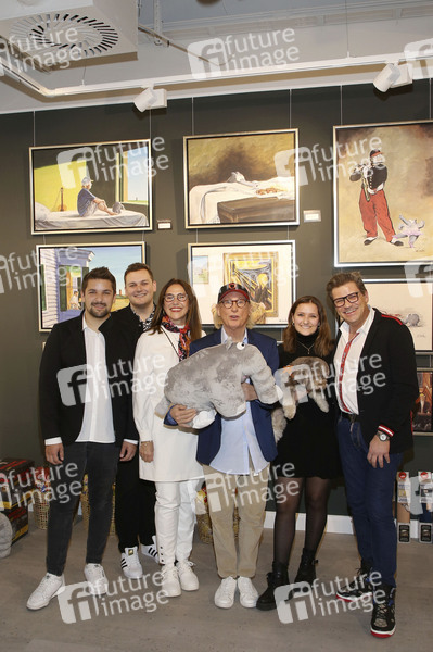 Alexander Walentowski, Niklas Walentowski, Angela Walentowski, Otto Waalkes, Celina Walentowski und Christoph Walentowski bei der Eröffnung der Walentowski Galerie 'Ottos BilderWelten' in der Europa Passage. Hamburg, 01.12.2022