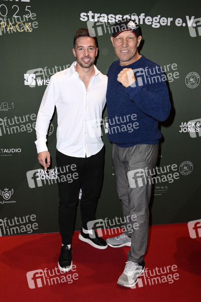 Ramon Roselly und Axel Schulz bei der 5. Charity Promi Pack 2025 Aktion von Maximilian Seitz im Bikini Berlin. Berlin, 26.11.2025