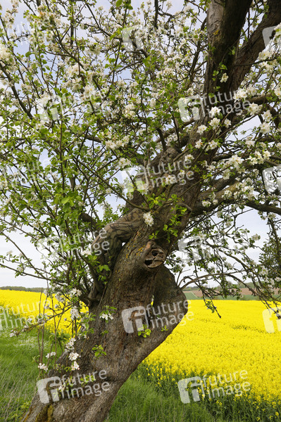 Nature Art: Apfelbaum Photoshooting und Bodypainting mit Model Darky an einem Rapsfeld. Dehmke, 30.05.2021 - Bodypainting Künstler: Jörg Düsterwald