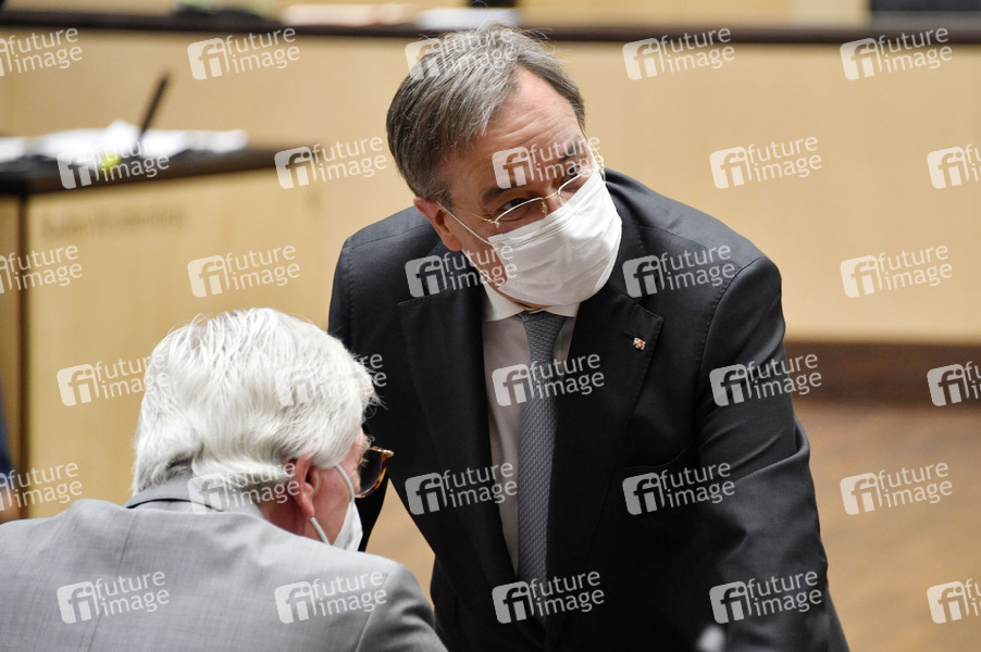 Volker Bouffier und Armin Laschet in der 1005. Sitzung des Deutschen Bundesrates im Bundesratsgebäude. Berlin, 28.05.2021
