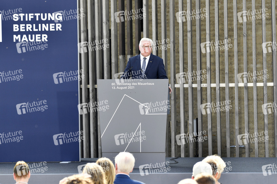Frank-Walter Steinmeier bei der zentralen Gedenkveranstaltung zum 60. Jahrestag des Mauerbaus auf dem Vorplatz der Kapelle der Versöhnung an der Gedenkstätte Berliner Mauer an der Bernauer Straße. Berlin, 13.08.2021