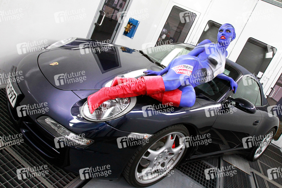 Bodypainting, Erotik, Frau, Mädchen, nackt, drinnen, weiblich, Körperkunst, Kunst, Malerei, Auto, Porsche, erotic, woman, girl, nude, indoor, female, body art, body painting, car